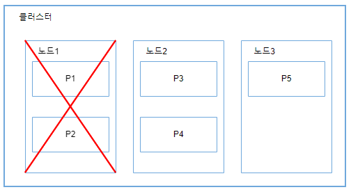 이런 경우, 노드1에 위치한 샤드 P1과 P2에 저장된 데이터 조각이 손실된다.