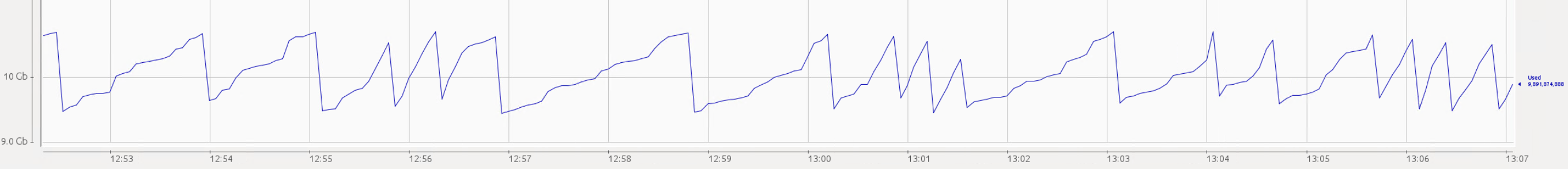 heap memory usage 위는 실제 운영 중인 JVM의 힙 메모리 상태입니다. GC (가비지컬렉션)이 돌면서 적절히 힙메모리를 조절해주는데, 인스턴스 생성을 너무 많이 하거나 정리가 잘 되지 않았을 때, Heap OOM 장애가 발생하게 됩니다. ( 발생전에 GC가 너무 많이 발생해서 시스템이 극격히 느려질 수 도 있음)